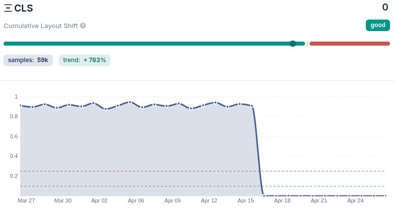 A workaround that drops a 0.91 CLS to 0.02 by exploiting two browser layout-shift exclusions